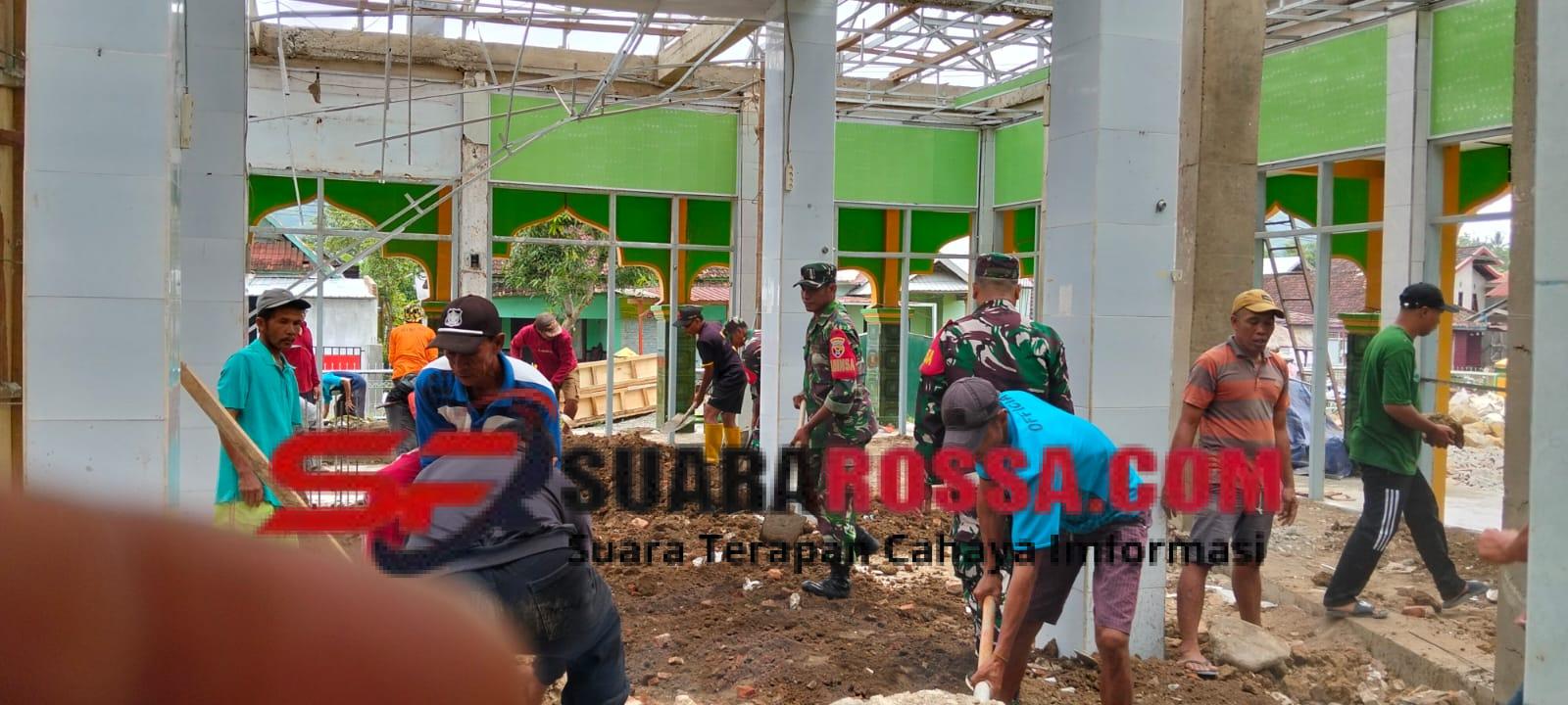 Kehadiran Babinsa di tengah masyarakat disambut antusias oleh warga yang turut serta membantu proses perbaikan masjid.