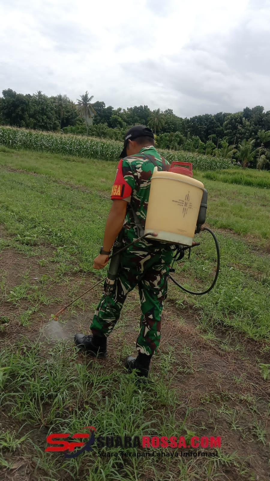 Dalam kegiatan ini, Babinsa melakukan pendampingan dengan membantu masyarakat petani dalam pengelolaan lahan pertanian. Selain itu, Babinsa turut membantu penyemprotan gulma/rumput sebagai tahap awal penyiapan lahan yang akan ditanami jagung jenis hibrida.