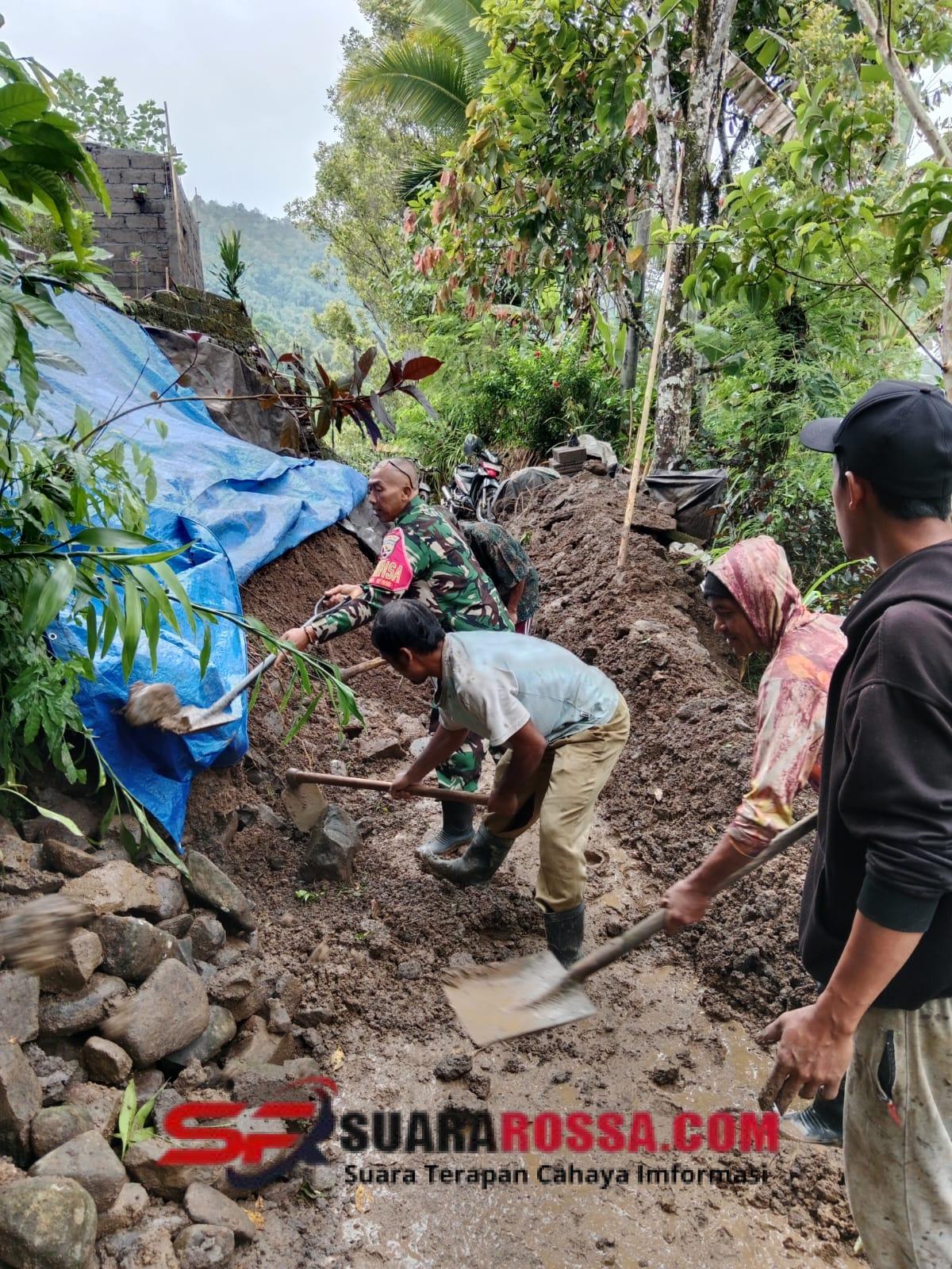 Aksi Gotong Royong Mulai pukul 08.20 WITA, personel TNI bersama perangkat desa dan masyarakat sekitar langsung terjun ke lokasi untuk melaksanakan gotong royong. Fokus utama adalah membersihkan material longsoran tanah dan puing tembok yang sempat menutup akses di sekitar rumah korban agar tidak membahayakan struktur bangunan utama.