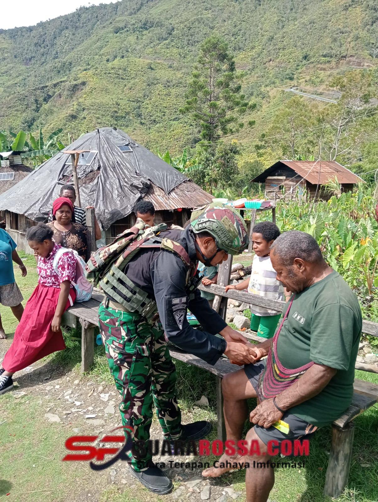 Papua-Kasih dan kepedulian kembali menyapa Kampung Pruleme, Kab. Puncak Jaya, Papua, Jumat (16/01/2026), prajurit Satgas Yonif 743/PSY Pos Muliambut melaksanakan program Free Medical Care bagi masyarakat setempat.