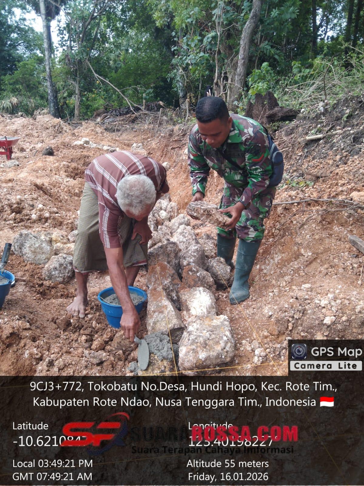 Babinsa Koramil 1627-02/Pantai Baru, Koptu Imran, melaksanakan kegiatan pendampingan pemasangan fondasi lahan KDKMP di Desa Hundihopo, Kecamatan Rote Timur, pada Jumat, 16 Januari 2026. Kegiatan tersebut dimulai sekitar pukul 16.00 Wita dan berlangsung di lokasi pembangunan KDKMP Desa Hundihopo.