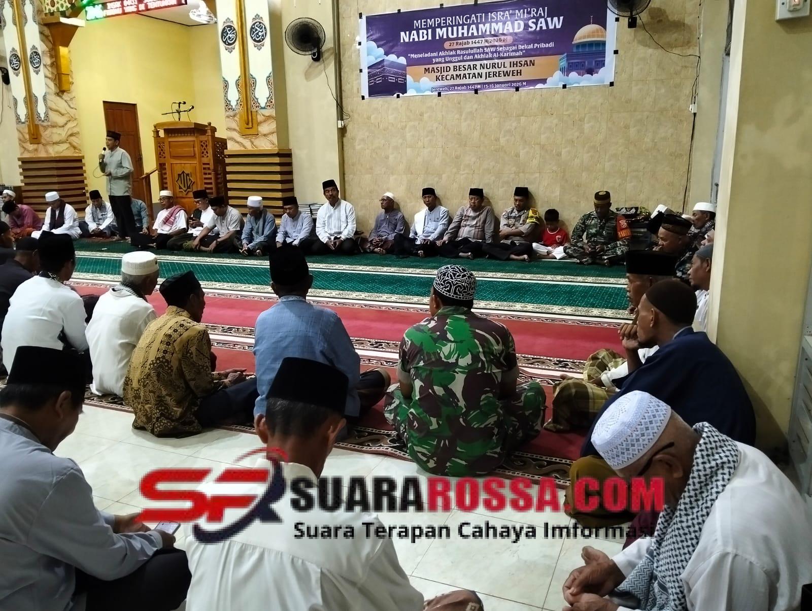 Sumbawa Barat – Dalam rangka memperingati Isra Mi’raj Nabi Muhammad SAW 27 Rajab 1447 H/2026 M, jajaran Kodim 1628/Sumbawa Barat melalui Koramil 1628-05/Jereweh menghadiri kegiatan keagamaan yang digelar di Masjid Nurul Al-Ihsan, Kecamatan Jereweh, Kamis malam (15/1/2026).