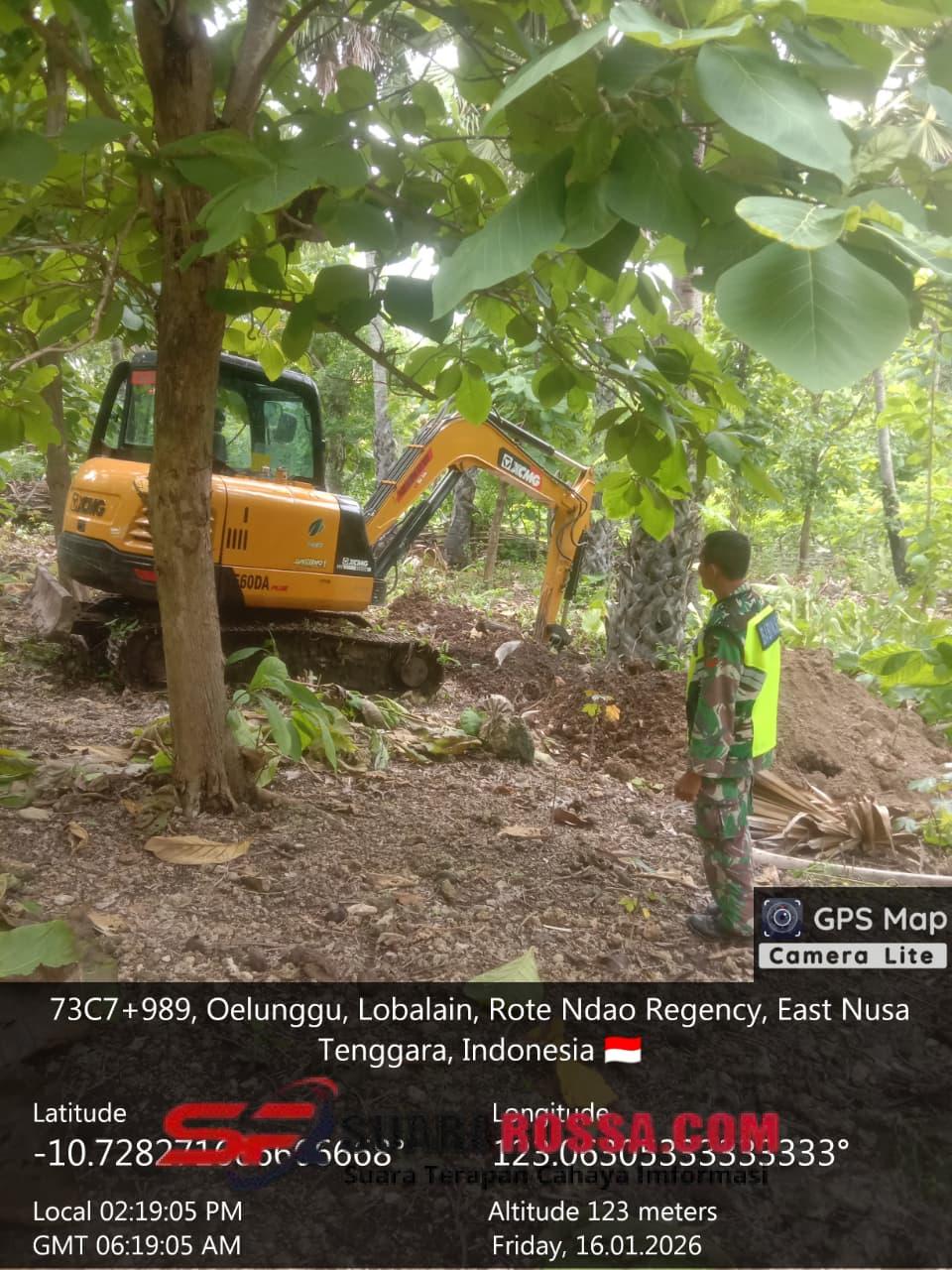 Rote Ndao – Wirasakti – Dalam rangka mendukung kelancaran dan ketertiban pelaksanaan pembangunan di wilayah binaan, Babinsa Koramil 1627-01/Ba’a, Koptu Syahrul Ramadhan, melaksanakan kegiatan pemantauan pembersihan lahan pembangunan KDKMP di Desa Oeleka, Kabupaten Rote Ndao, Jumat (16/1/2026).