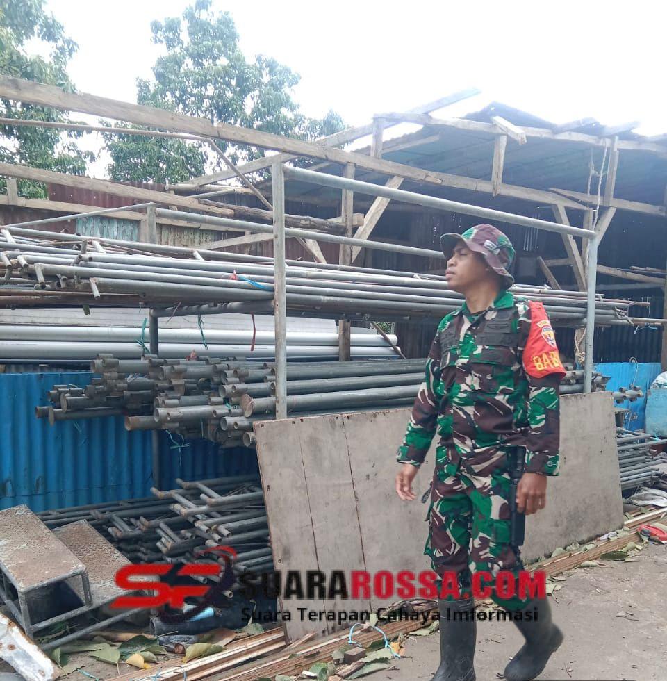 Di lokasi kejadian, Pratu Stevent tidak hanya memantau, tetapi juga membantu koordinasi awal dengan pemerintah desa setempat untuk pendataan kerugian. Ia juga memastikan tidak ada material bangunan yang membahayakan akses jalan atau rumah warga di sekitarnya.