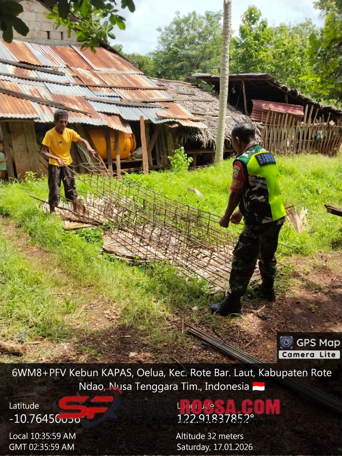 Rote Ndao – Babinsa Koramil 1627-03/Batutua, Sertu Jose Timo, melaksanakan kegiatan pemantauan dan monitoring pembangunan KDKMP di Dusun Soti, Desa Oelua, Kecamatan Loaholu, Kabupaten Rote Ndao, Sabtu (17/12/2025).