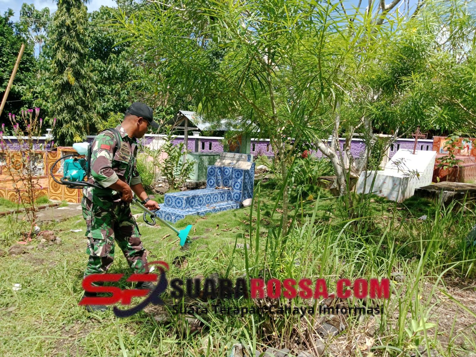Rote Ndao – Babinsa Koramil 1627-01/Baa, Serda Benyamin N. Tae, melaksanakan kegiatan karya bakti ...