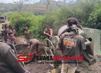 Ende, – Babinsa Koramil 1602-03/Detusoko, Kopka Edwin D. Pay, bersama warga Desa Lisekuru, Kecamatan Lepembusu Kelisoke, Kabupaten Ende, melaksanakan kegiatan karya bakti berupa pengerjaan rabat jal...