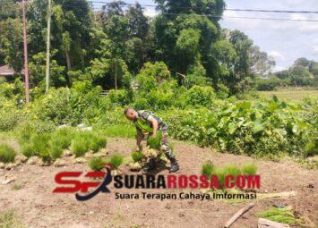 SUMBA TENGAH – Babinsa Koramil 03/Katikutana Kodim 1613/Sumba Barat, Sertu Ananias Valentim, melaksanakan kegiatan komunikasi sosial (komsos) ketahanan pangan bersama warga yang sedang menyiapka...