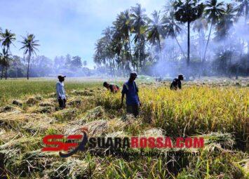 NTT-SIKKA. Babinsa Koramil 1603-02/Talibura Kodim 1603/Sikka, Praka Yosep Yarius, melaksanakan kegiatan pendampingan panen padi bersama masyarakat Desa Nebe, Kecamatan Talibura, Kabupaten Sikka. Kegia...