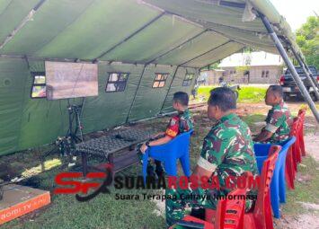 NTT – Sumba Timur. Komandan Kodim 1601/Sumba Timur, Letkol Inf Dobby Noviyanto, S.S., E., bersama para Perwira Staf Kodim 1601/Sumba Timur mengikuti kegiatan video conference (vicon) dalam rangk...