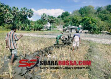 NTT – Sumba Timur. Babinsa Koramil 05/Waingapu,Kodim 1601/Sumba Timur,Sertu Darusman melaksanakan pendampingan kepada masyarakat dalam kegiatan bajak sawah sebagai persiapan lahan semai bibit pa...
