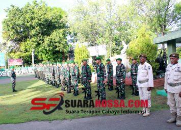 NTT – Sumba Timur. Kasdim 1601/Sumba Timur, Mayor Inf Sambudi, memimpin pelaksanaan upacara bendera rutin yang dilaksanakan di Lapangan Apel Makodim 1601/Sumba Timur, Jalan Ir. Sukarno No. 11, K...