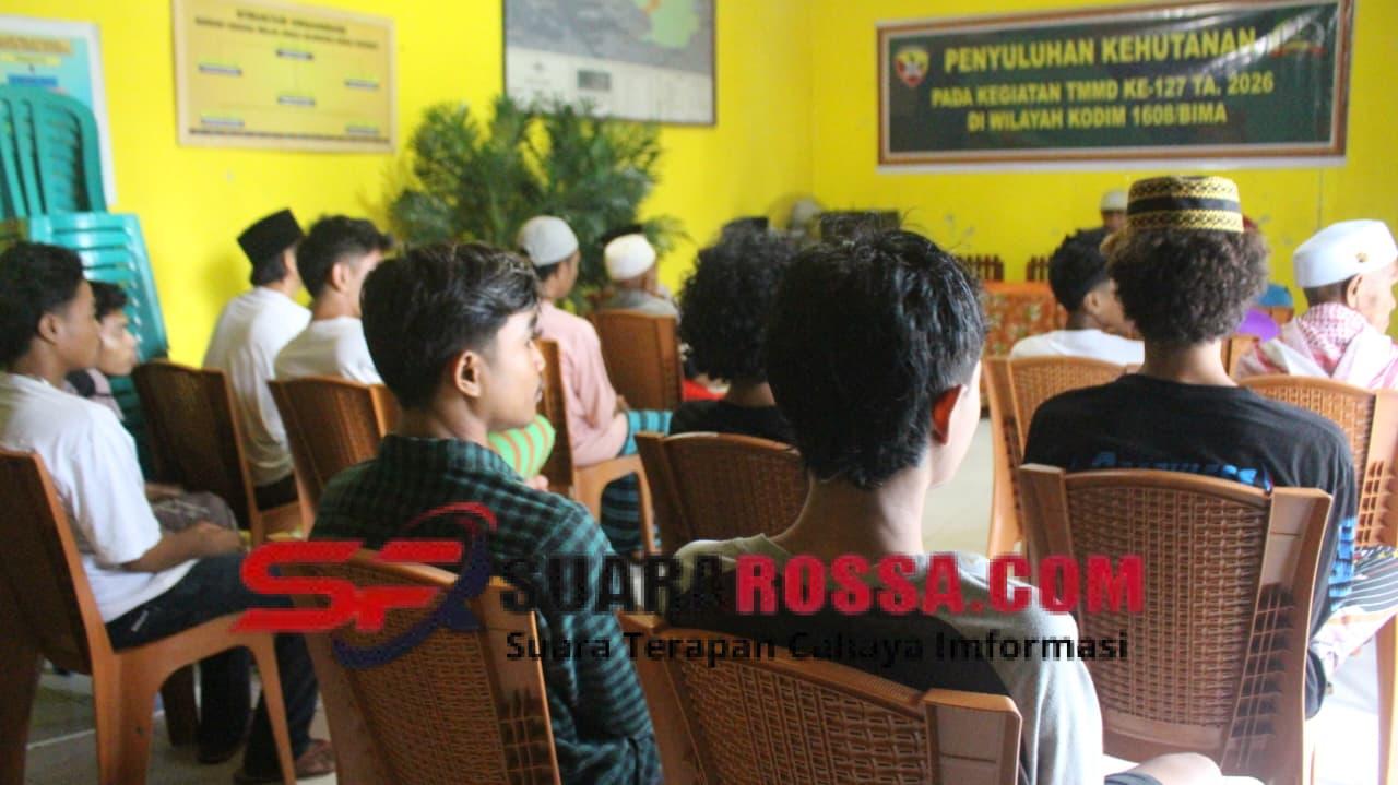 Kodim 1608/Bima menggelar penyuluhan kehutanan sebagai bagian dari sasaran non fisik TMMD ke-127 pada hari Selasa, 25 Februari 2026. Penyuluhan ini menghadirkan H. Furkan dari Dinas Kehutanan Kabupaten Bima sebagai narasumber. Topik utama yang diangkat adalah pentingnya menjaga hutan agar tidak gundul dan mendorong partisipasi masyarakat dalam pemeliharaan pohon.