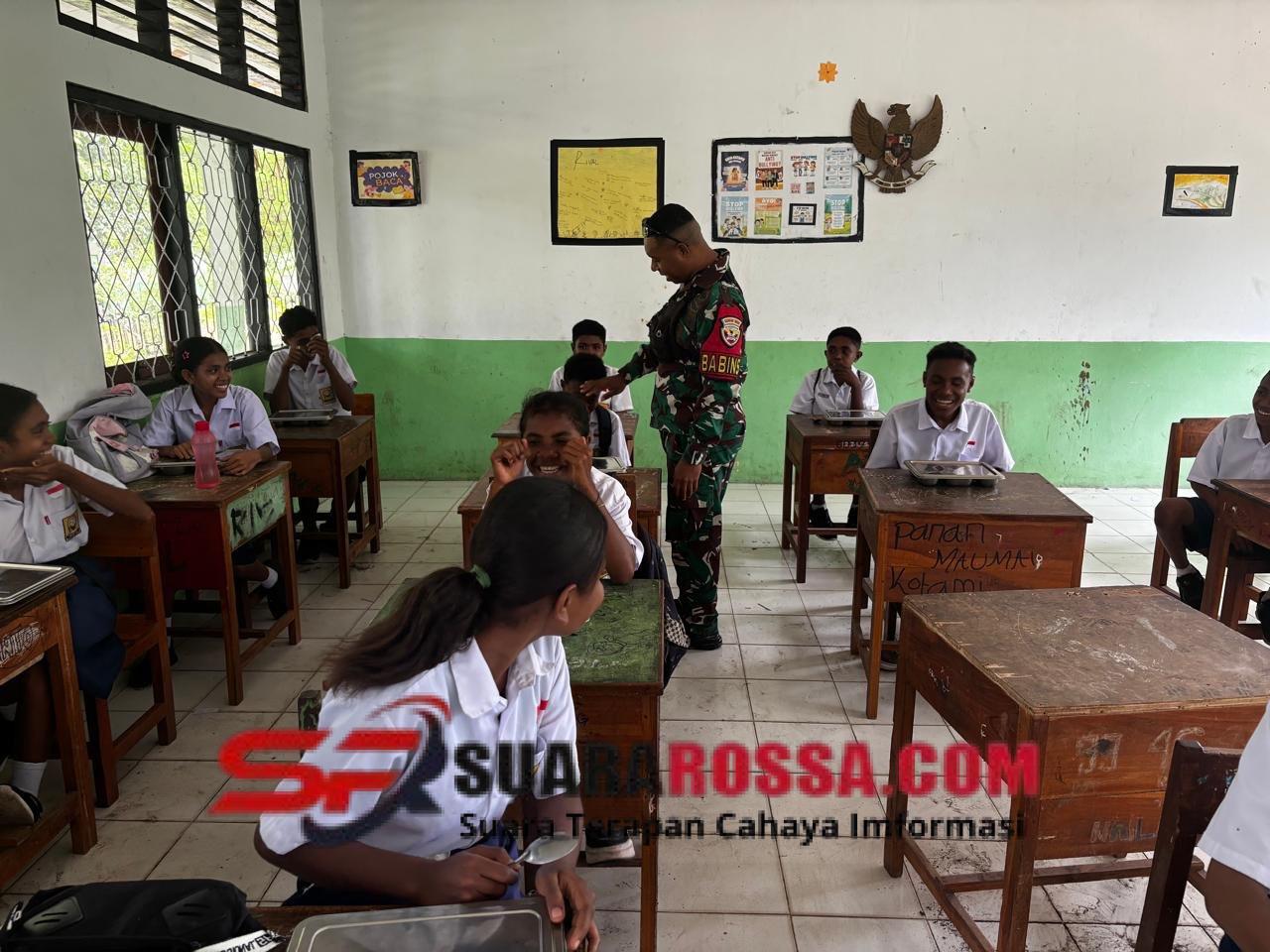 NTT—ALOR—, Pada Rabu 1 April 2026 pukul 08.00 WITA, Babinsa Desa Nailang dan Desa Waisika, Praka Bing Jonas Lau We, melaksanakan kegiatan pemberian makan sehat dan bergizi bagi anak sekolah di Kecamatan Alor Timur Laut, Kabupaten Alor.