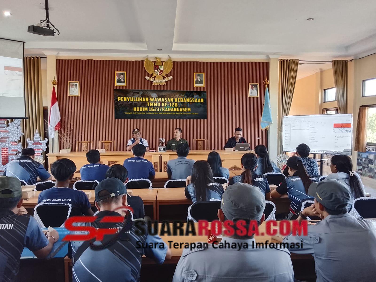 KARANGASEM – Menyadari pentingnya Wawasan Kebangsaan dalam kehidupan Masyarakat, pada kegiatan Non FIsik TMMD ke-128 Kodim 1623/ Karangasem memberikan Penyuluhan Wasbang di Balai Serbaguna Desa Pempatan Kecamatan Rendang, Kabupaten Karangasem dengan Menghadirkan Kepala Badan Kesatuan Bangsa dan Politik Kab. Karangasem I Ketut Indra Sutawan, SH., MAP. sebagai salah satu Narasumber dalam Kegiatan tersebut, yang diikuti 50 orang peserta terdiri dari Tokoh Masyarakat, Perbekel dan Sekaa Truna Truni Desa Pempatan pada Jumat (24/4).