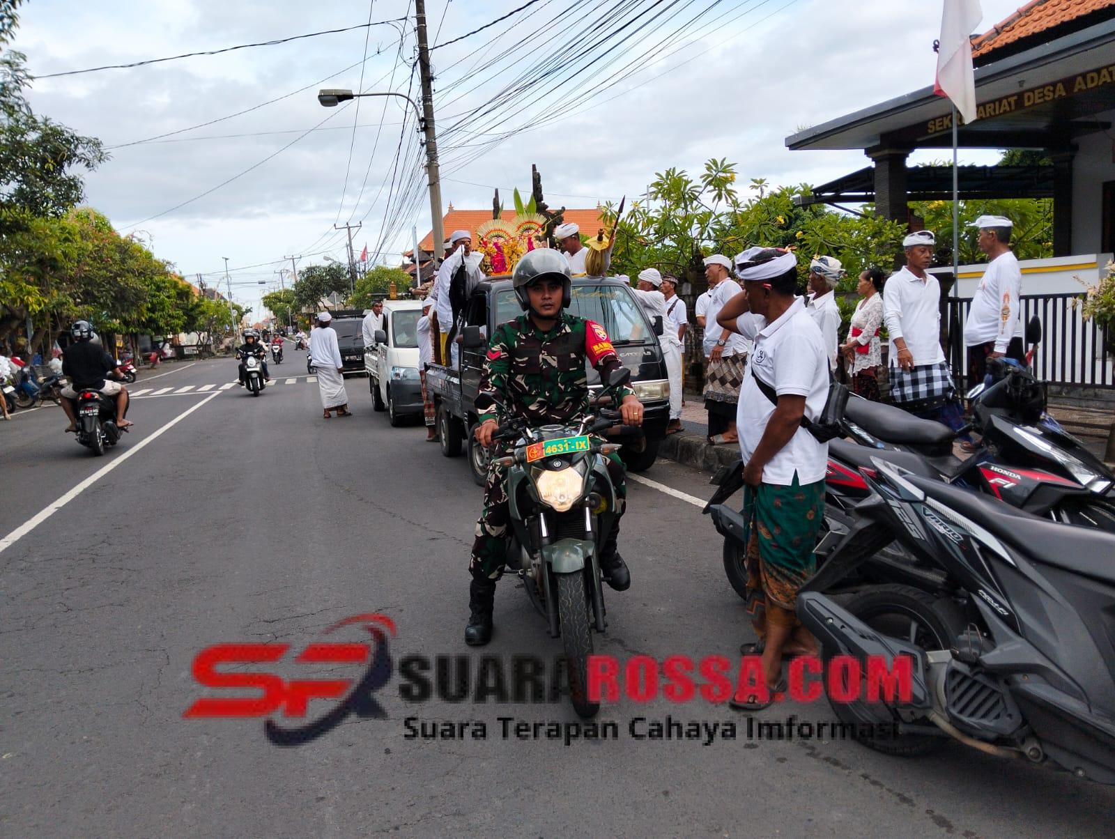 Klungkung, – Dalam rangka menjaga keamanan, ketertiban serta kelancaran berlangsungnya piodalan mapag toya, Danramil 1610-01/Klungkung Kapten Cpl Putu Agus menerjunkan dia Babinssa untuk melaksanakan pengawalan dan pengamanan, Selasa ( 02/12/25 ).
