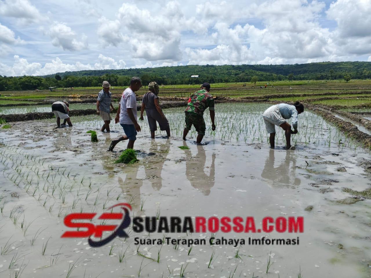 NTT-Kefamenanu., Hamparan sawah yang membentang di Desa Oepuah Utara, Kecamatan Biboki Moenleu, terlihat ramai pagi itu saat Babinsa Desa Oepuah Utara, Sertu Cosme Cortereal dari Koramil 1618-06/Bian, turun langsung ke sawah membantu warga menanam padi, Jumat (05/12/2025). Sebagai bentuk nyata pendampingan Babinsa terhadap para petani di wilayah binaan. Kehadiran Babinsa di tengah masyarakat menjadi energi tersendiri yang menumbuhkan semangat gotong royong dalam menjaga ketahanan pangan daerah.
