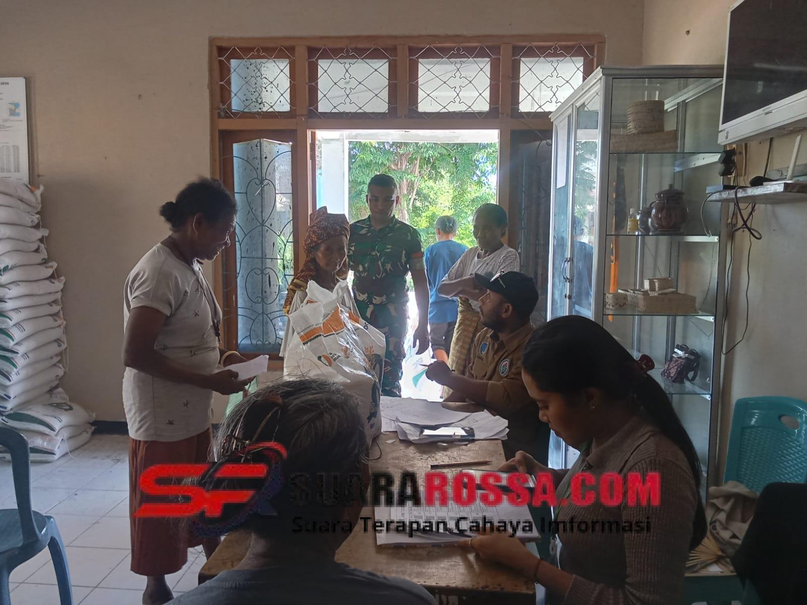 Babinsa Koramil 1625-05/Aesesa, Kodim 1625/Ngada, melaksanakan pendampingan kegiatan pembagian bantuan pangan berupa beras dan minyak goreng dari Dolog kepada masyarakat Desa Aeramo, Kecamatan Aesesa, Kabupaten Nagekeo, pada Jumat, 19 Desember 2025.