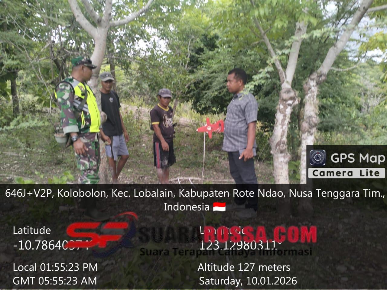 Ba’a – Babinsa Koramil 1627-01/Ba’a, Serda Joni D. Ludji, melaksanakan kegiatan monitoring wilayah berupa pengukuran lahan pembangunan KDKMP di Desa Oematamboli, Kabupaten Rote Ndao, pada Sabtu, 10 Januari 2026. Kegiatan tersebut dilaksanakan sekitar pukul 13.45 Wita dan berlangsung dalam keadaan aman serta lancar.