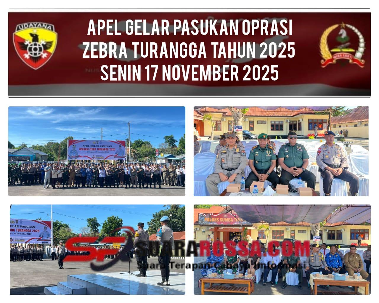 Waingapu, Sumba Timur — Polres Sumba Timur menggelar Upacara Gelar Pasukan Operasi Zebra Turangga 2025 pada Senin, 17 November 2025, pukul 08.12 WITA. Kegiatan tersebut berlangsung di Lapangan Apel Polres Sumba Timur, Jalan R. Soeprapto No. 33, Kelurahan Prailiu, Kecamatan Kambera, Kabupaten Sumba Timur.