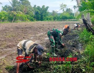 NTT – Sumba Timur. Babinsa Koramil 04/Tabundung, Kodim 1601/Sumba Timur,Sertu Ejiman, melaksanakan kegiatan pendampingan ketahanan pangan (Hanpangan) dengan membantu mencabut rumput (penyiangan ...