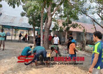 Rote Ndao – Babinsa Koramil 1627-03/Batutua, Koptu Yoseph Gunawan Seran, melaksanakan kegiatan pemantauan penurunan bahan-bahan material bangunan di Kantor Desa Tualima, Kecamatan Rote Barat Laut, K...