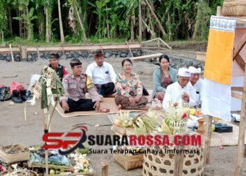 Klungkung,- Babinsa Tusan Koramil 1610-02/Banjarangkan Serka Dewa Putu Carma Mudita bersama Bhabinkamtibmas menghadiri sekaligus mengawal upacara keagamaan mantukang/ Mudalang Ida Betara Sri, Ngerapuh...