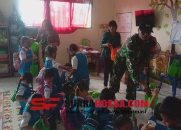 c Babinsa Koramil 1627-02/Pantai Baru, Kodim 1627/Rote Ndao, melaksanakan kegiatan pendampingan pemberian makanan sehat bergizi kepada para pela...