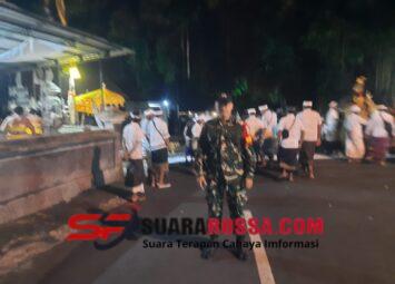 Klungkung,- Aparat Babinsa Satra Serka Gusti Ngurah Armawan bersama Bhabinkamtibmas dan Bankamda serta pecalang melaksanakan pengawalan dan peng...