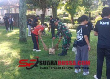 Tabanan – Babinsa Desa Kelating Koramil 1619/Tabanan, Sertu Sang ketut Badung bersama Ketua Koperasi Merah Putih, Perbekel, Ketua BPD, serta para mahasiswa INSTIKI melaksanakan kegiatan gotong r...