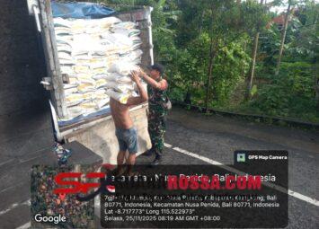 Klungkung,- Bertempat di Kantor Desa Klumpu, Kecamatan Nusa Penida, Kabupaten Klungkung, babinsa Klumpu Kopka Kadek Parta melaksanakan monitoring droping bantuan pangan beras dan minyak goreng program...