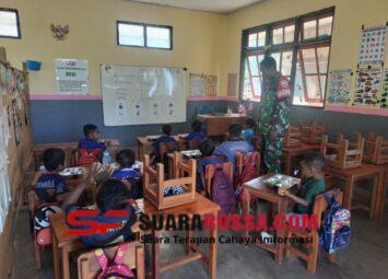 Rote Ndao, Kamis 13 November 2025 — Dalam rangka mendukung program peningkatan gizi anak dan menciptakan generasi sehat serta cerdas, Babinsa Koramil 1627-02/Pantai Baru, Koptu Mesak Foeh, melaksana...
