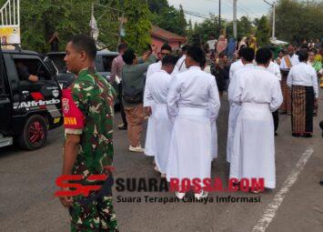 NTT-SIKKA. Babinsa Koramil 1603-04/Kewapante Kodim 1603/Sikka, Serka Muhammad Nur, bersama Kopda Elias Langga melaksanakan kegiatan pengamanan prosesi penerimaan iman baru atas nama Pater Kristoforus ...