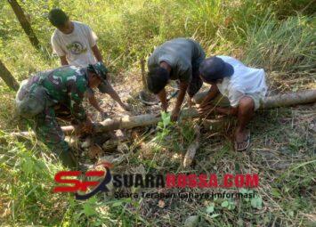 NTT – Sumba Timur. Babinsa Koramil 06/Karera Kodim 1601/Sumba Timur, Serka Dominggus Lay bersama warga binaan melaksanakan kegiatan gotong royong memperbaiki pipa air bersih yang mengalami kemac...