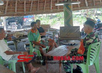 NTT-Kefamenanu., Sebagai wujud nyata kedekatan TNI dengan masyarakat, Babinsa Koramil 1618-03/Insana Utara Kopda Viktorius Riwu melaksanakan pemantauan wilayah sekaligus komunikasi sosial bersama warg...