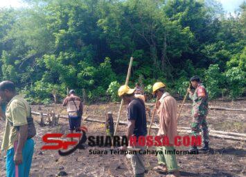 Flotim, – Babinsa Koramil 1624-06/Wulanggitang, Praka Lalu Sopian, membantu masyarakat Desa Kobasoma, Kecamatan Titehena, Kabupaten Flores Timur, dalam kegiatan penanaman padi gogo dan jagung, S...