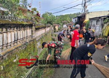 Dapdap putih, Busungbiu, Buleleng – Komando Rayon Militer 1609-07/Busungbiu, kapten infantri Wayan nada , beserta jajaran, hadir dan memimpin langsung kegiatan gotong royong pembersihan material tan...