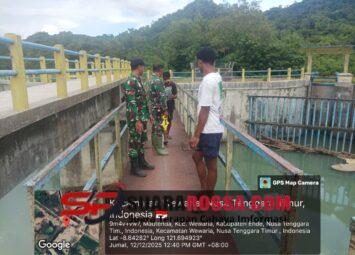 Ende – Dalam rangka mendukung pendataan wilayah dan membantu kebutuhan masyarakat di wilayah binaan, Babinsa Koramil 1602-03/Detusoko melaksanakan kegiatan peninjauan debit air Bendungan Mautenda se...