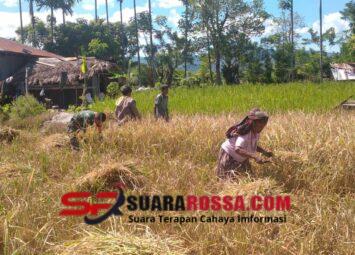 NTT – Sumba Timur. Babinsa Koramil 06/Karera Kodim 1601/Sumba Timur, Pratu Hezron Domu Wora, turut membantu para petani melaksanakan panen padi di lahan pertanian Desa Tandula Jangga Tandula Jan...