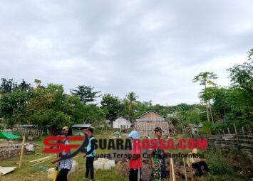 Haumeniana – Prajurit Satgas Pamtas RI-RDTL Sektor Barat Yonarhanud 2 Kostrad Pos Haumeniana mengadakan gotong royong pengecoran atap Gere...