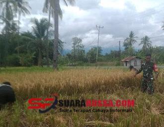 NTT-SIKKA. Babinsa Koramil 1603-02/Talibura Kodim 1603/Sikka, Pratu Andreas Nong Sina, melaksanakan kegiatan pendampingan panen padi bersama masyarakat di Desa Nangahale, Kecamatan Talibura, Kabupaten...