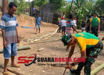 Belu, Nusa Tenggara Timur — Prajurit Pos Lakmars Satgas Pengamanan Perbatasan RI–RDTL Yonarmed 12 Kostrad bersama masyarakat Desa Lakmaras melaksanakan kegiatan Karya Bakti dalam rangka persiapan ...