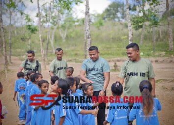 Belu, Nusa Tenggara Timur — Prajurit Pos Fohuk Satgas Pengamanan Perbatasan RI–RDTL Yonarmed 12 Kostrad melaksanakan kegiatan olahraga pagi bersama siswa SD Loonuna, Kecamatan Lamaknen Selatan. Ke...
