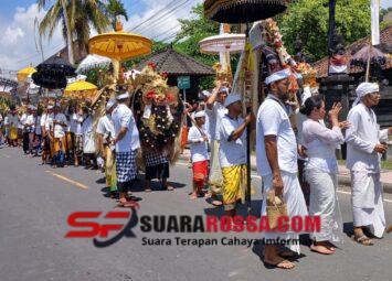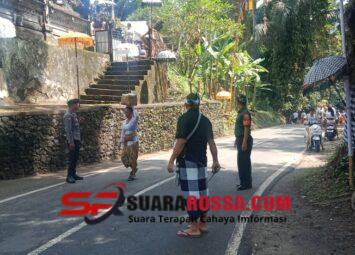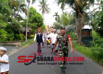 Tabanan – Babinsa Desa Biaung, Koramil 1619-08/Penebel Serda Dirwan, melaksanakan kegiatan pengamanan rangkaian upacara Ngented Linggih yang berlangsung di Pura Puseh dan Pura Desa Biaung, Kec. Pene...