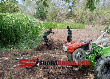 KODIM 1605/BELU, Dalam rangka menyiapkan ketahanan pangan wilayah, Anggota Satgaster Kodim 1605/Belu Pos Halibete II Serda Hironimus Kono mendampingi petani menyiapkan lahan pertanian milik Bapak Bapa...
