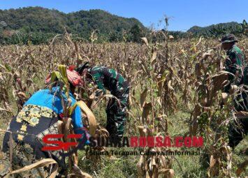 Pos Haslot Satgas Pamtas RI-RDTL Yonarmed 12 Kostrad menggelar kegiatan karya bakti panen jagung bersama masyarakat di Desa Alas Selatan, Kecamatan Kobalima Timur, Kabupaten Malaka, Nusa Tenggara Timu...