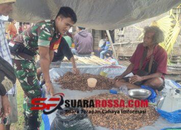 NTT-Sumba Timur. Babinsa Koramil 02/Rindi Umalulu Kodim 1601/Sumba Timur, Pratu Dendi Djami, melaksanakan kegiatan komunikasi sosial (komsos) sekaligus pemantauan harga bahan pokok di Pasar Desa Rindi...
